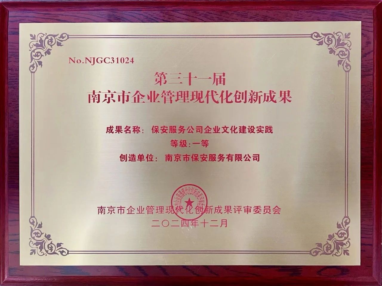 喜報!南京市保安服務有限公司榮獲第31屆南京市企業(yè)管理現(xiàn)代化創(chuàng)新成果一等獎
